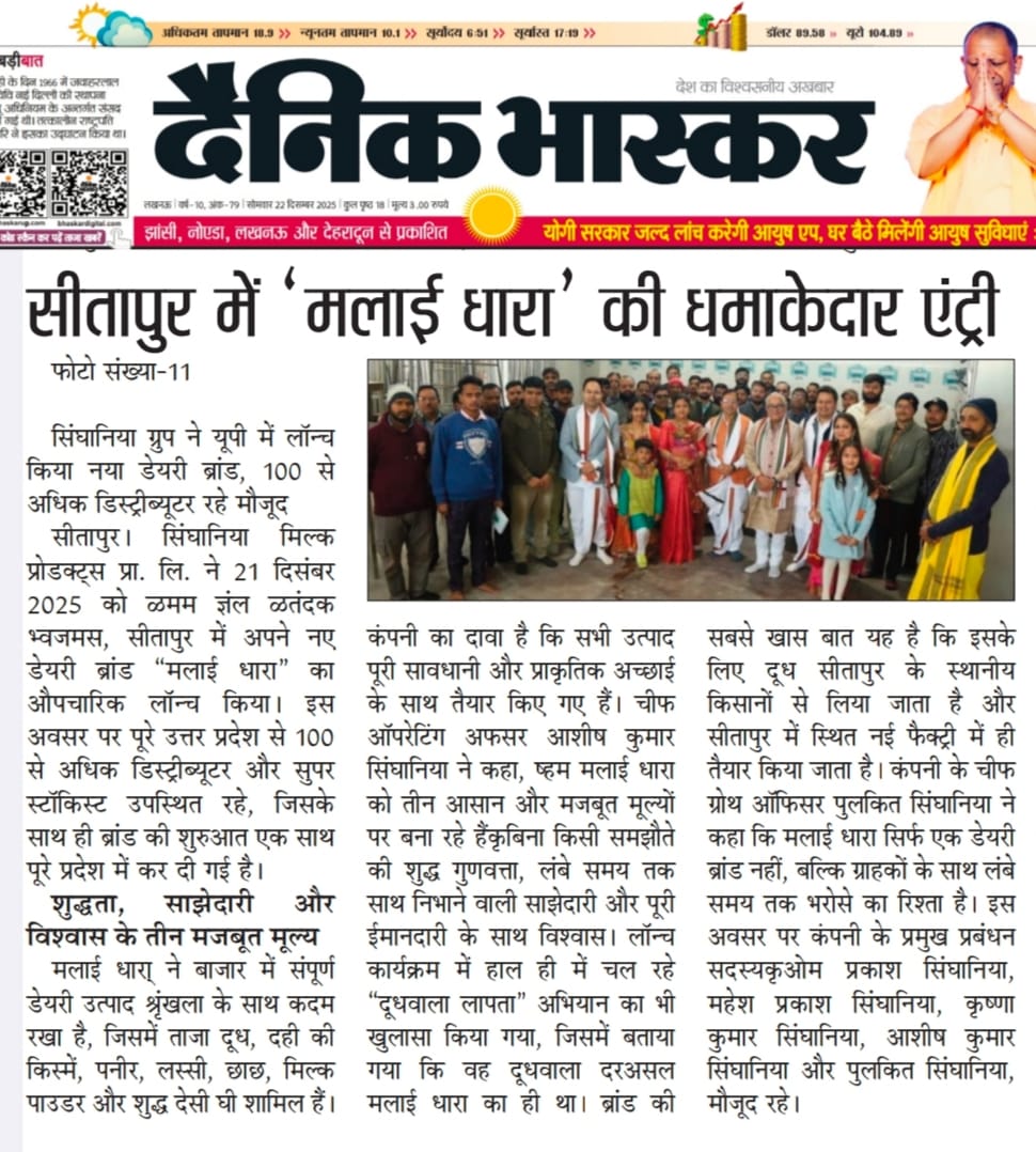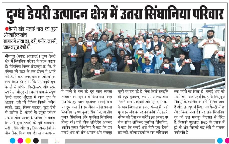 सीतापुर में मलाई धारा की धमाकेदार लॉन्चिंग,सिंघानिया ग्रुप की बड़ी सौगात !